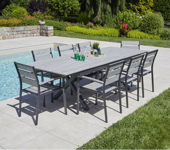 Vous avez la possibilité de doter votre table en alu d’un plateau en verre trempé, histoire de donner un look à la fois élégant et contemporain à votre salon de jardin.